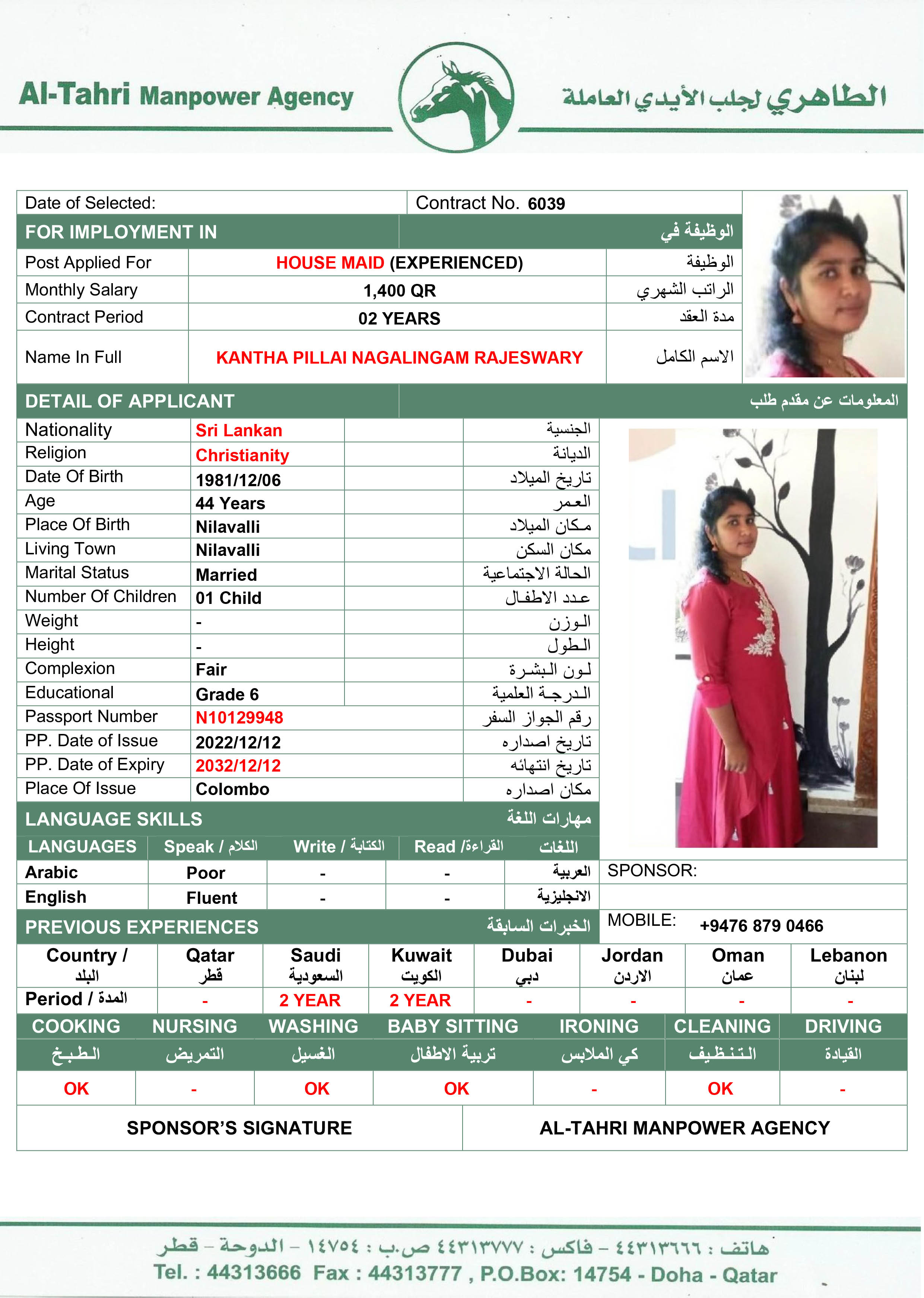 Name - English NAGALINGAM RAJESWARY