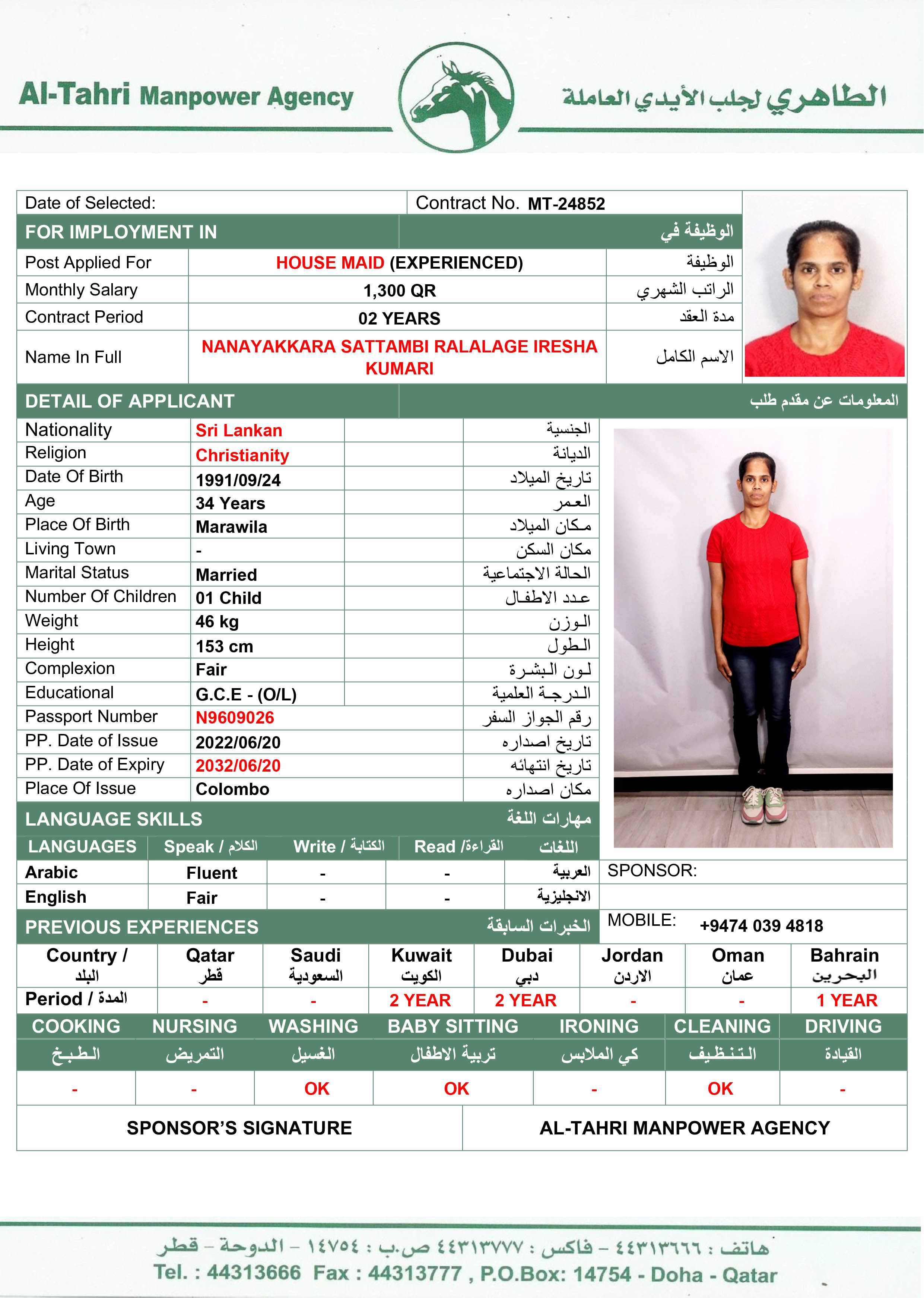 Name - English IRESHA KUMARI