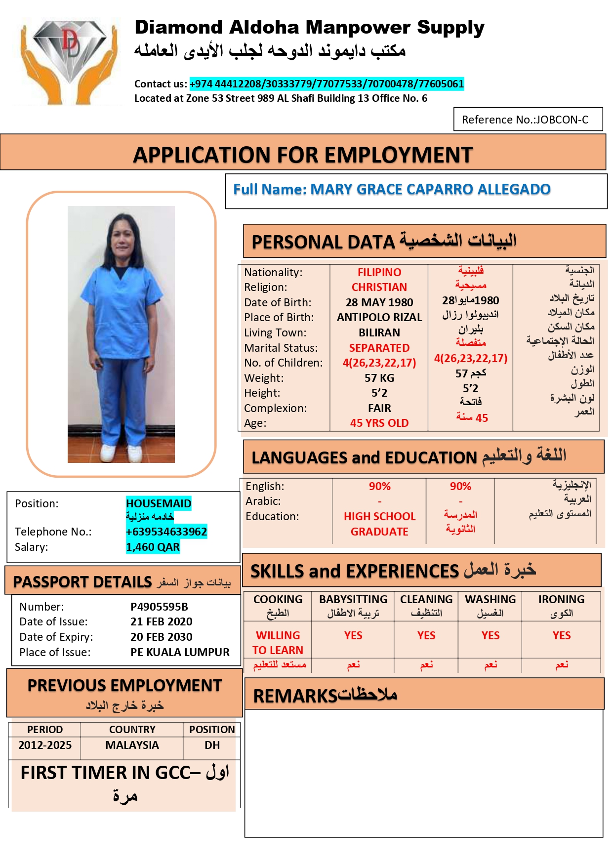 Name - English MARY GRACE CAPARRO ALLEGADO