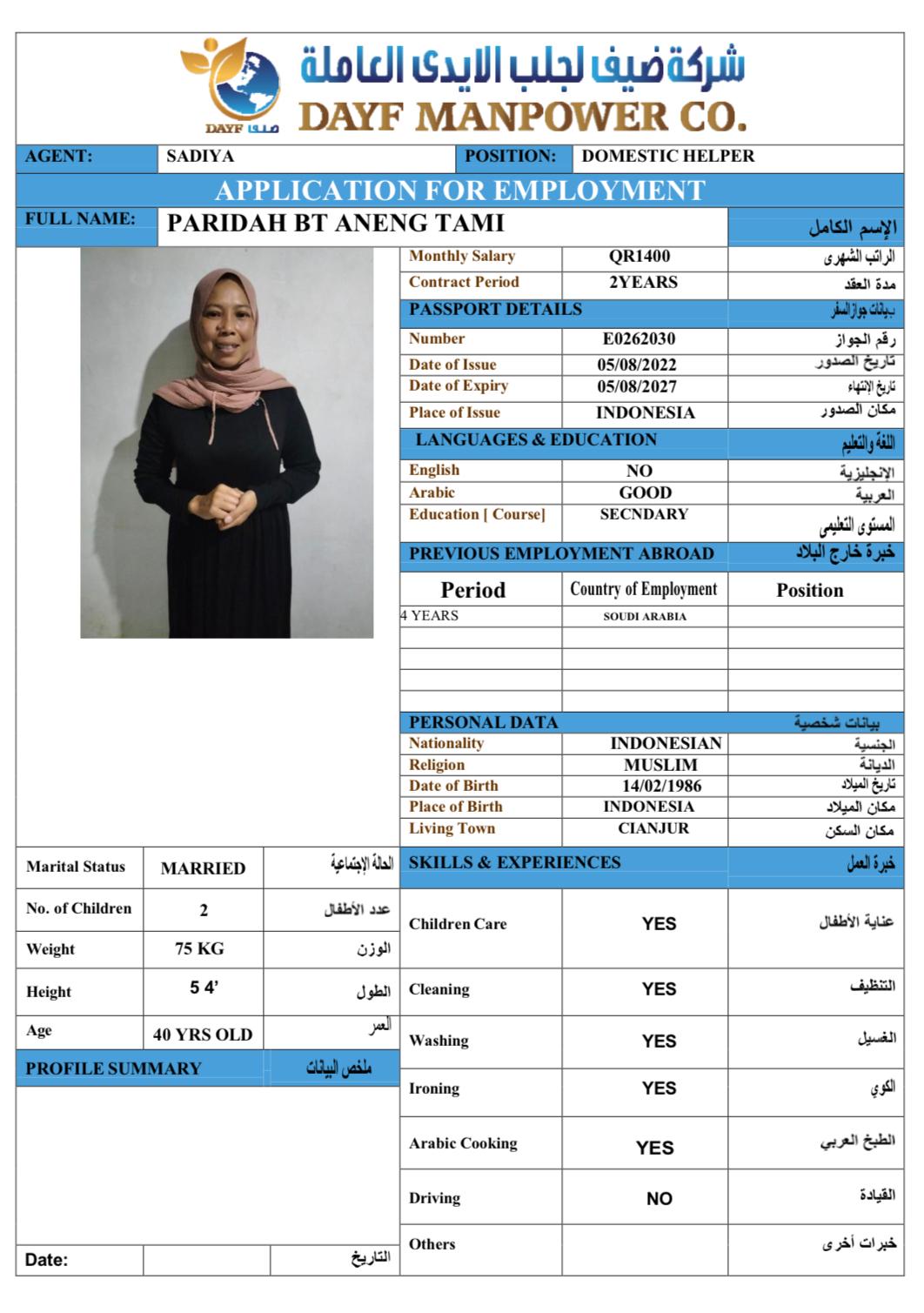Name - English PARIDAH BT ANENG