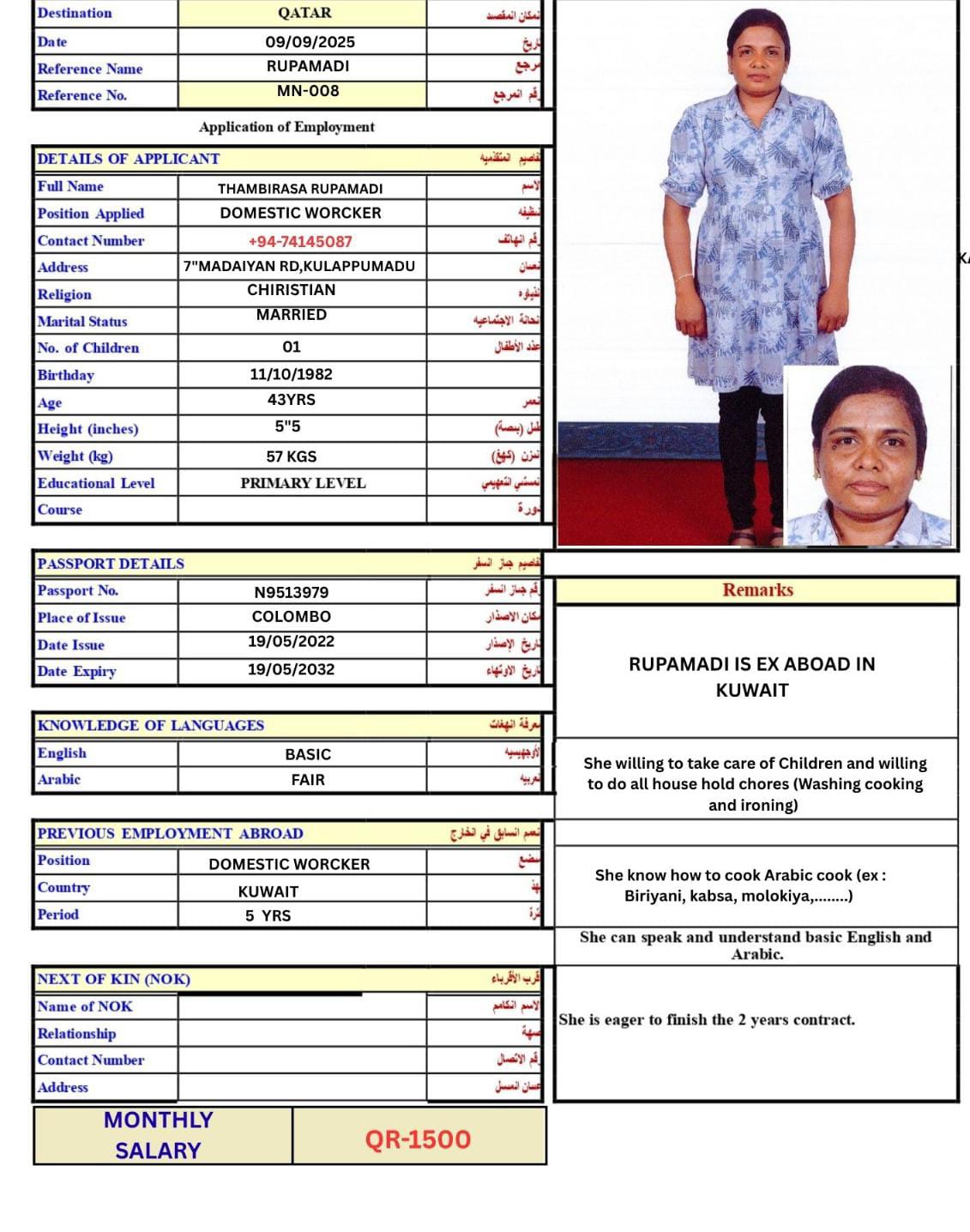 SHE CAN DO ALL HOUSEHOLD WORK SUCH AS CLEANING WASHING IRONING AND COOK