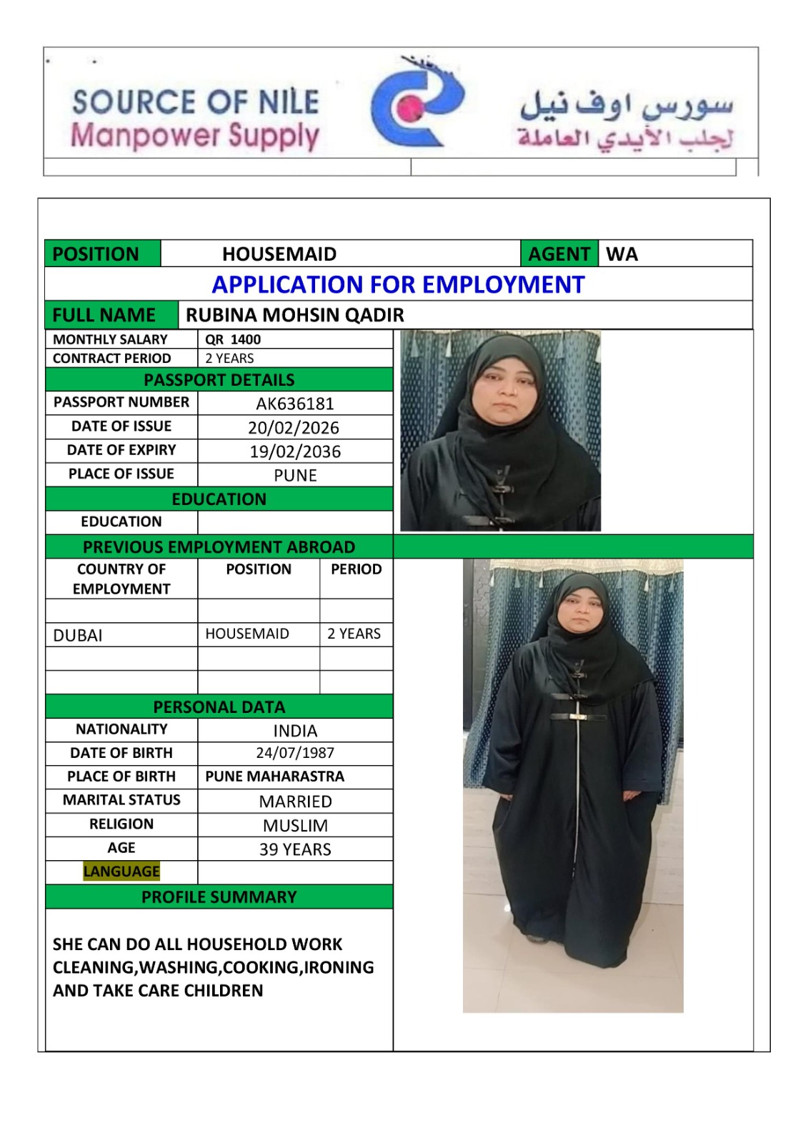 Welcome Are you looking for a driver, nurse, house manager, cleaner, nanny, secretary, professional workers for companies, security and guard personnel, foreman .... etc. Have you spent a long time looking for a maid? Have you made a great effort to find the right person? But to no avail ... Don't worry, we have the perfect solution to your problem Services…