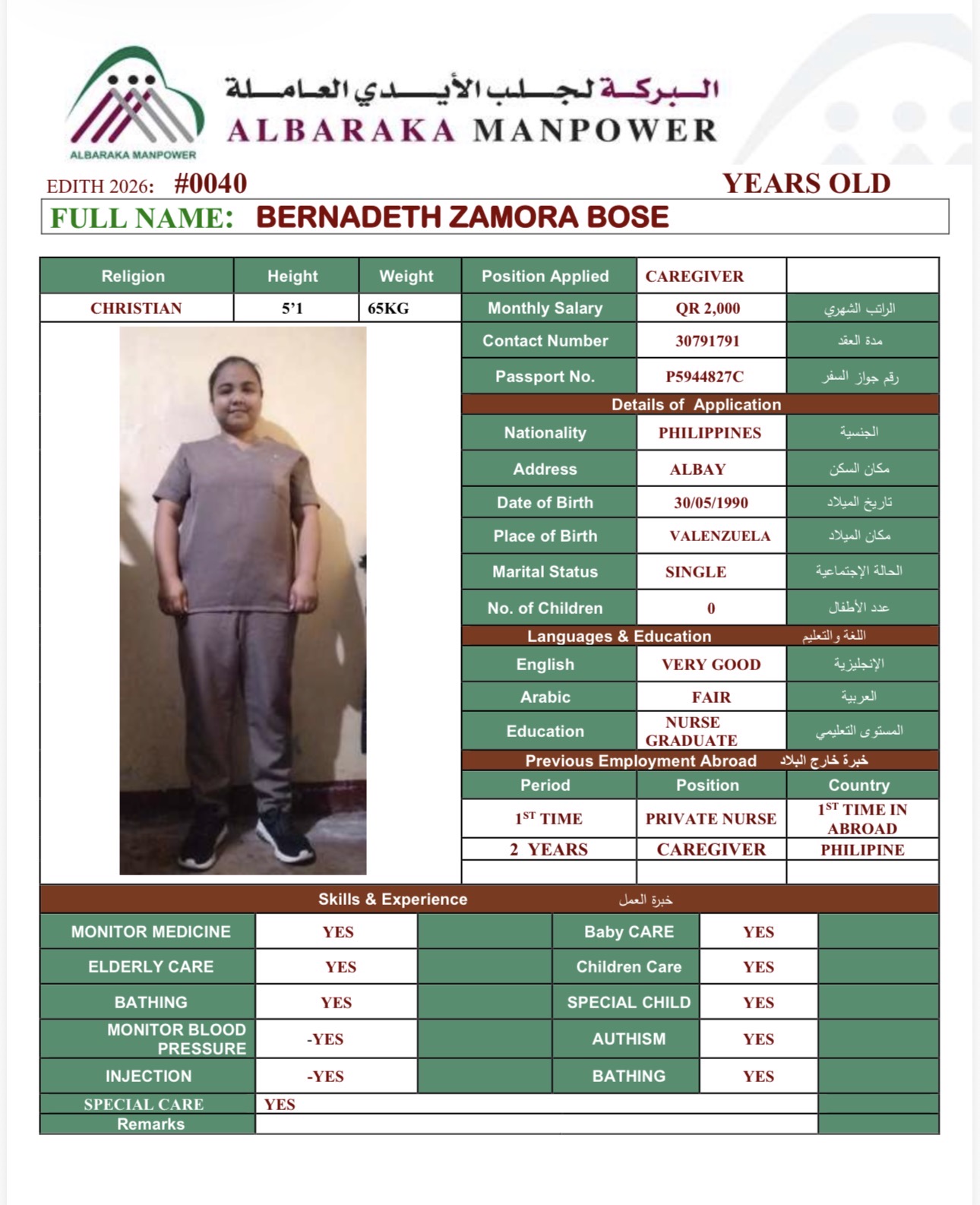 Name - English BERNADETH ZAMORA BOSE