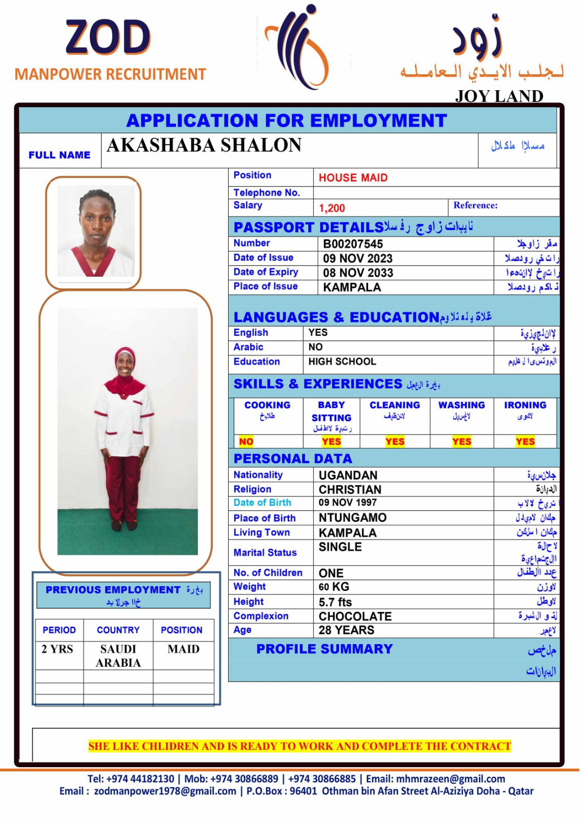 Name - English AKASHABA SHALON