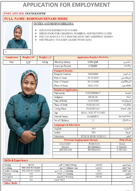Welcome Are you looking for a driver, nurse, house manager, cleaner, nanny, secretary, professional workers for companies, security and guard personnel, foreman .... etc. Have you spent a long time looking for a maid? Have you made a great effort to find the right person? But to no avail ... Don't worry, we have the perfect solution to your problem Services…