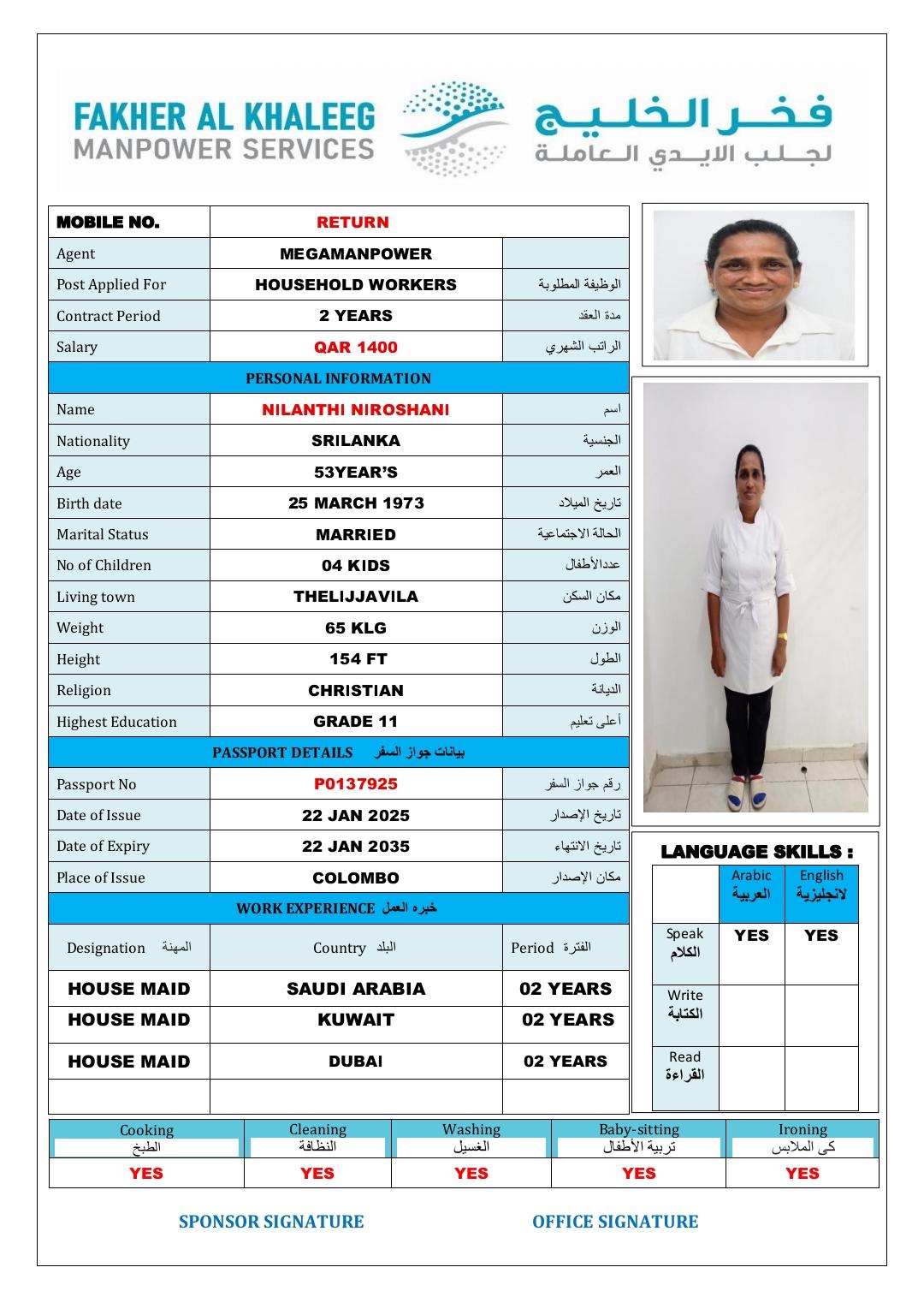 Welcome Are you looking for a driver, nurse, house manager, cleaner, nanny, secretary, professional workers for companies, security and guard personnel, foreman .... etc. Have you spent a long time looking for a maid? Have you made a great effort to find the right person? But to no avail ... Don't worry, we have the perfect solution to your problem Services…