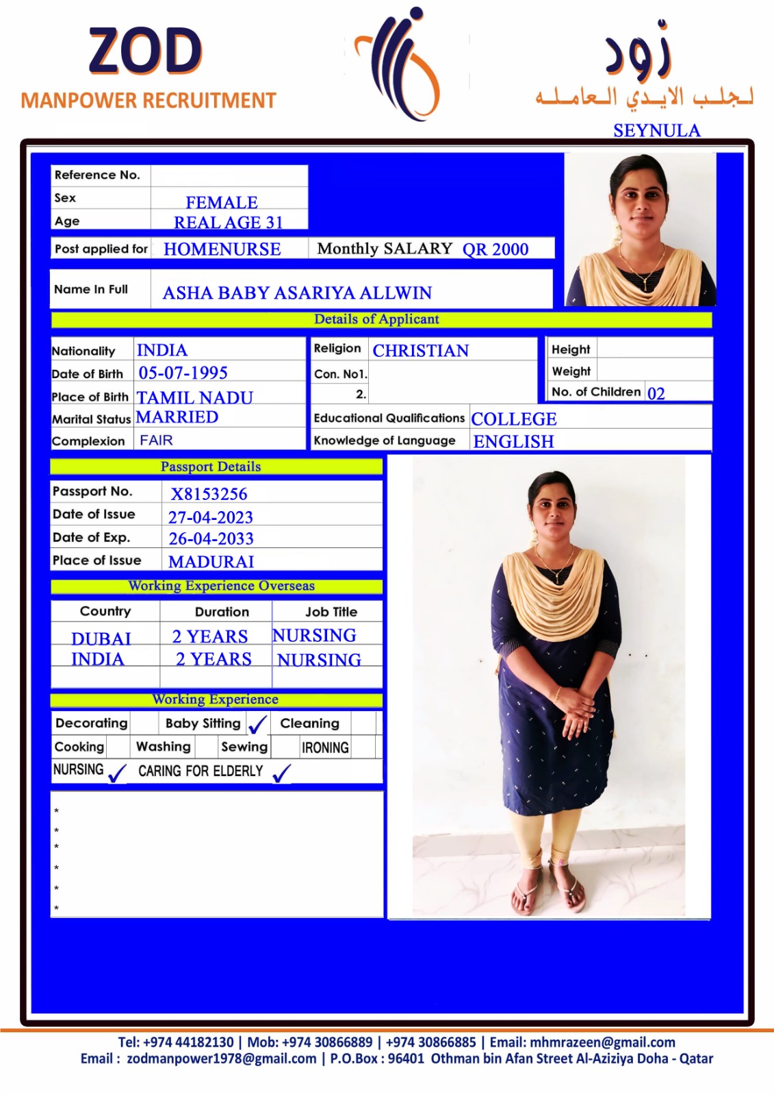 Name - English ASARIYA ALLWIN