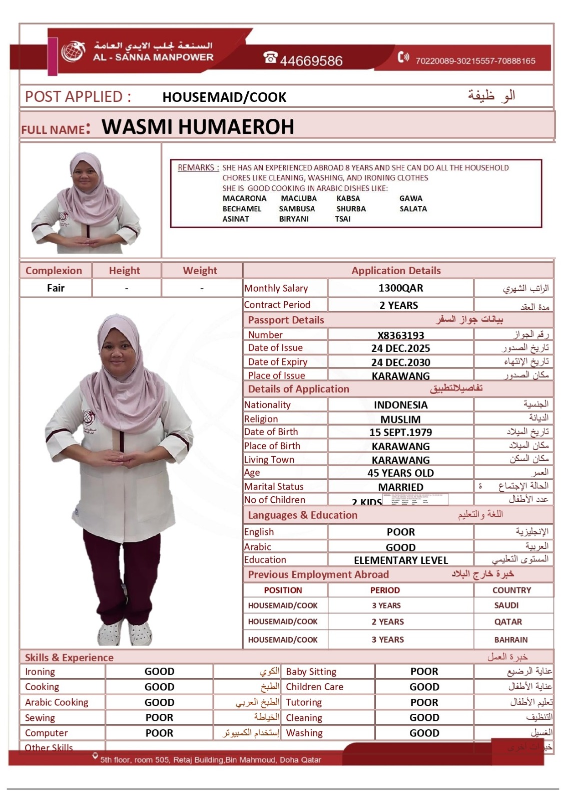 Salary 1300 QAR