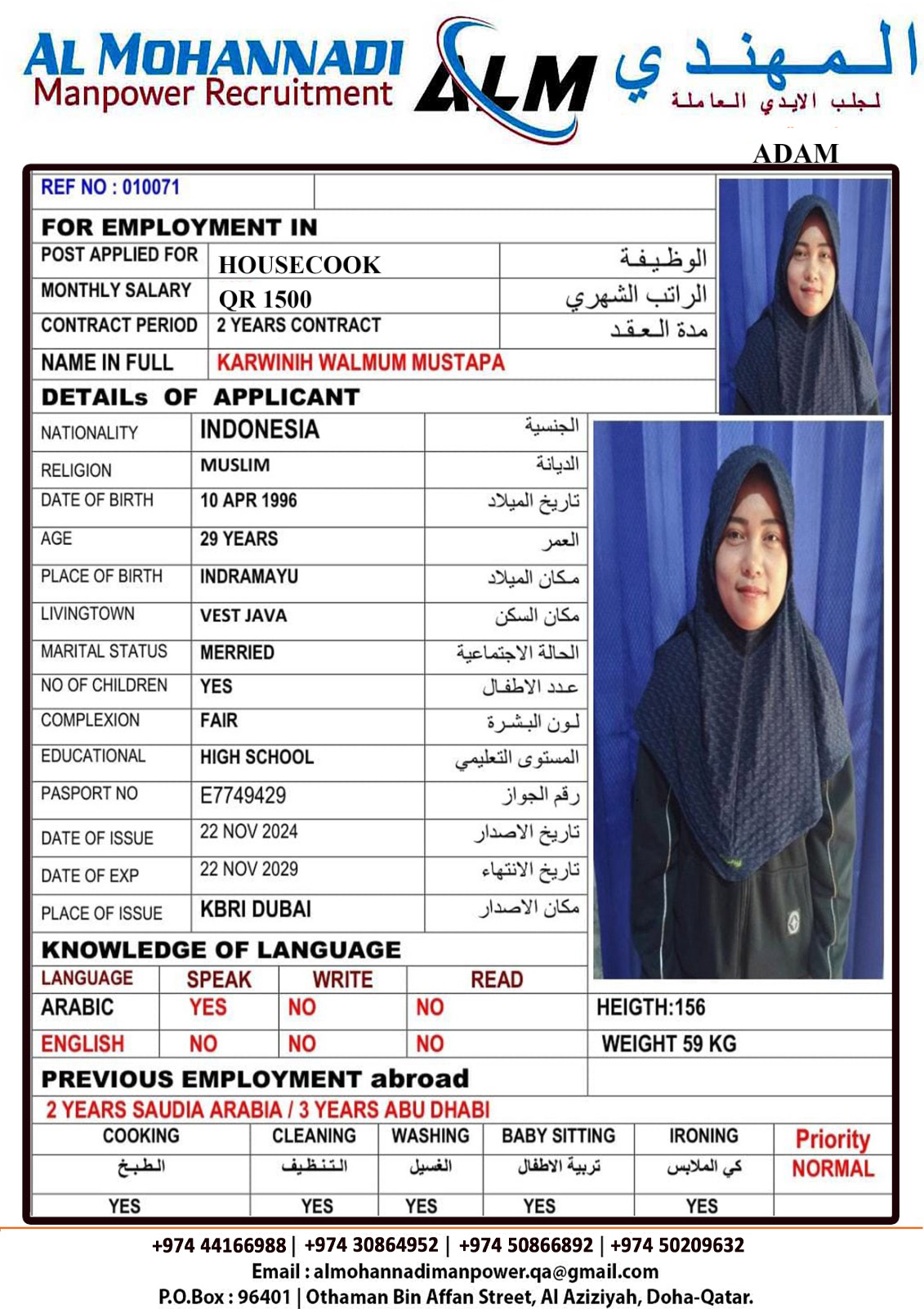 Email almohannadimanpower.qa@gmail.com