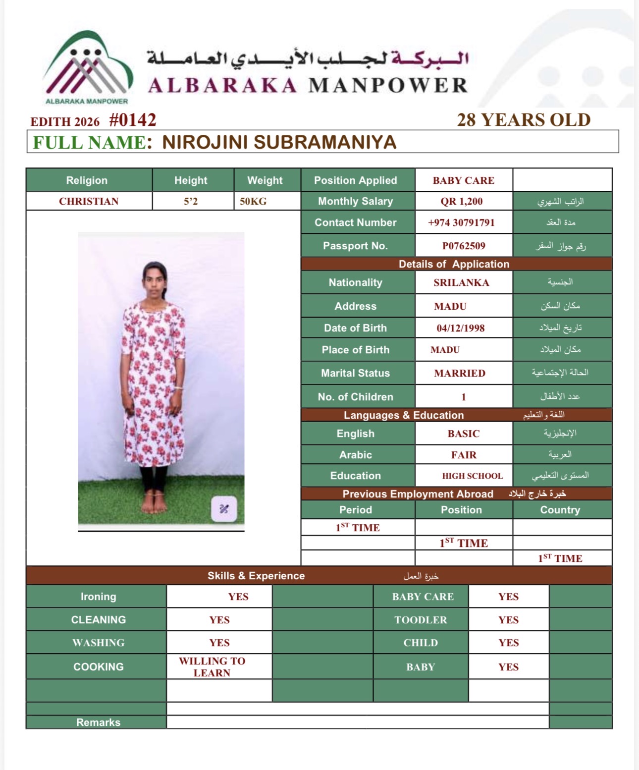 Name - English NIROJINI SUBRAMANIYA