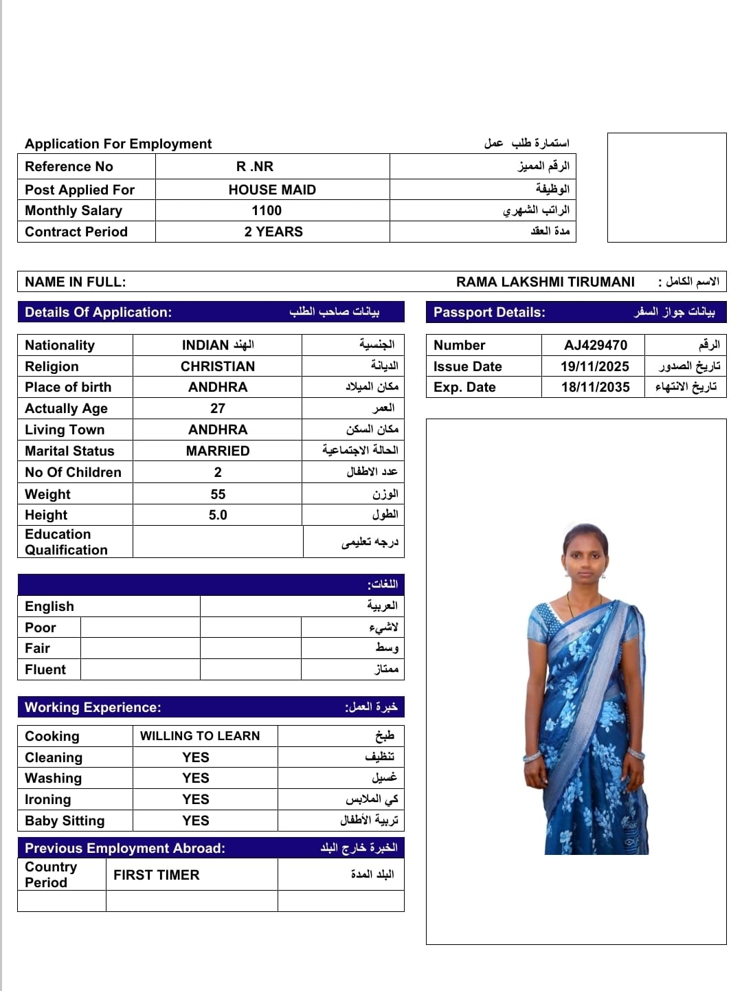 Name - English RAMA LAKSHMI TIRUMANI