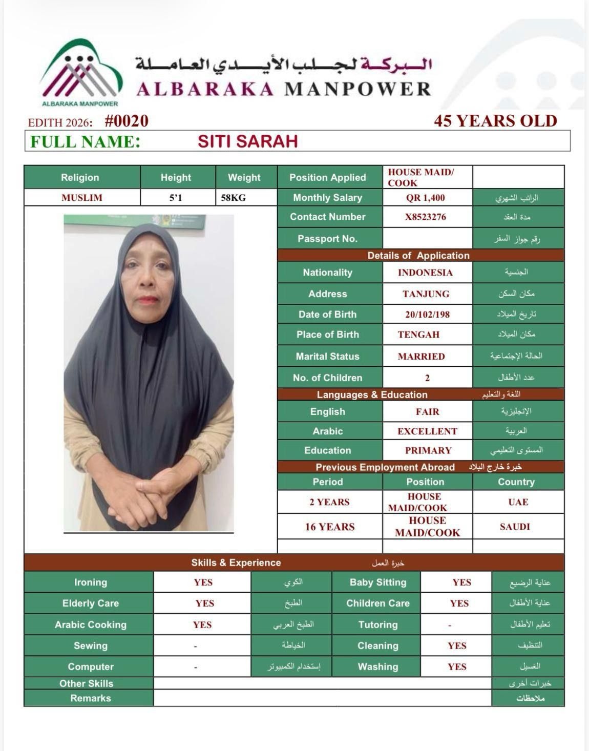 Name - English SITI SARAH
