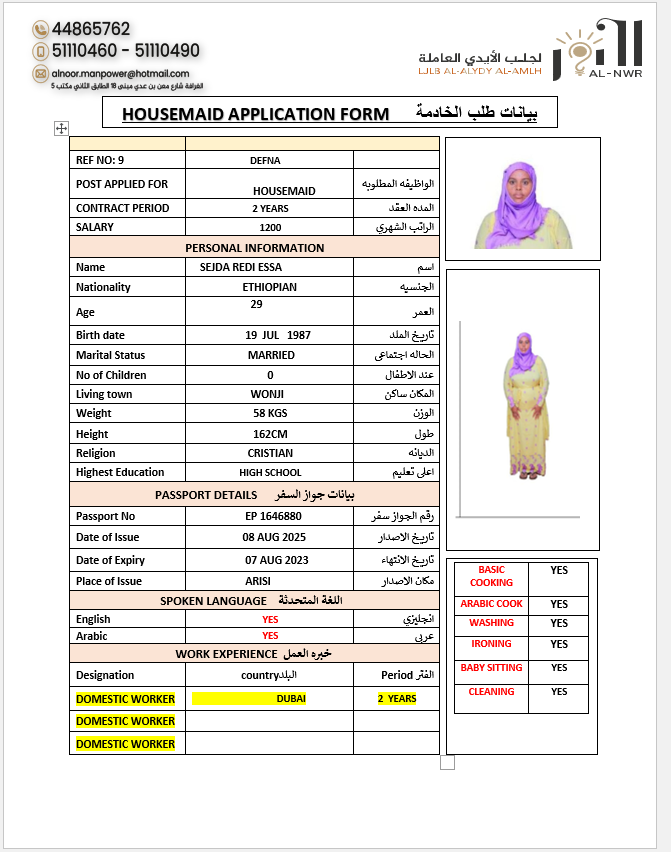 Welcome Are you looking for a driver, nurse, house manager, cleaner, nanny, secretary, professional workers for companies, security and guard personnel, foreman .... etc. Have you spent a long time looking for a maid? Have you made a great effort to find the right person? But to no avail ... Don't worry, we have the perfect solution to your problem Services…