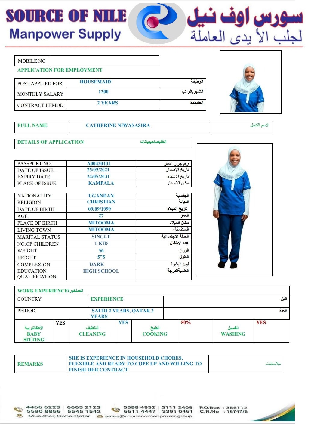Name - English CATHERINE NIWASASIRA