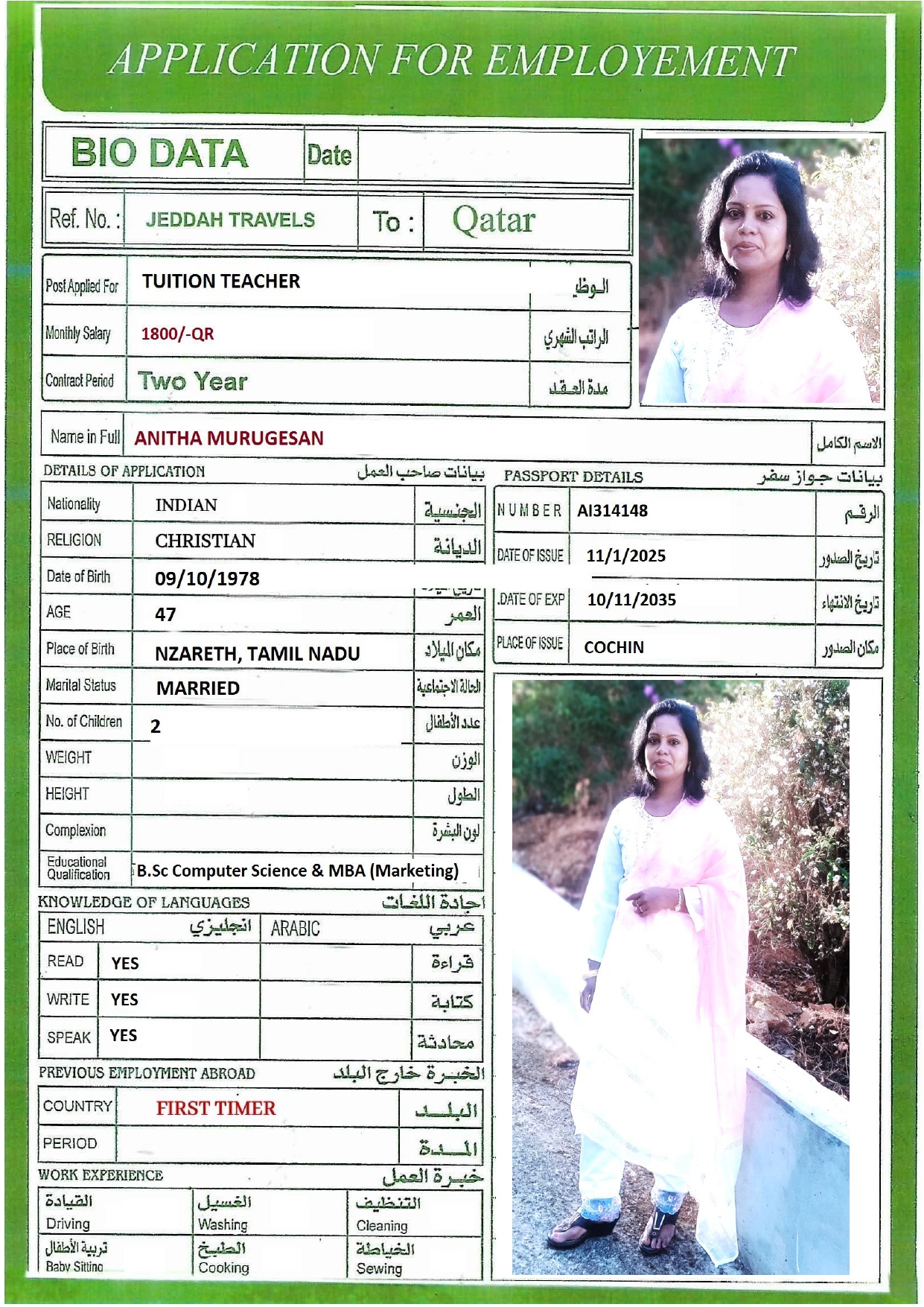 Name - English ANITHA MURUGESAN