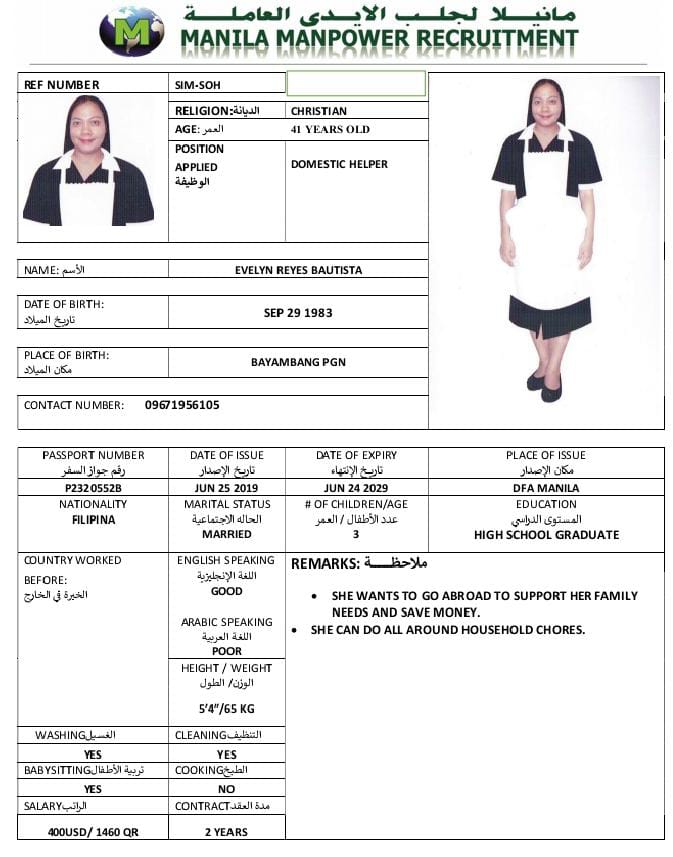 SHE CAN DO ALL HOUSOLD WORK SUCH AS CLEANING WASHING IRONING AND TAKE CARE OF CHILDREN