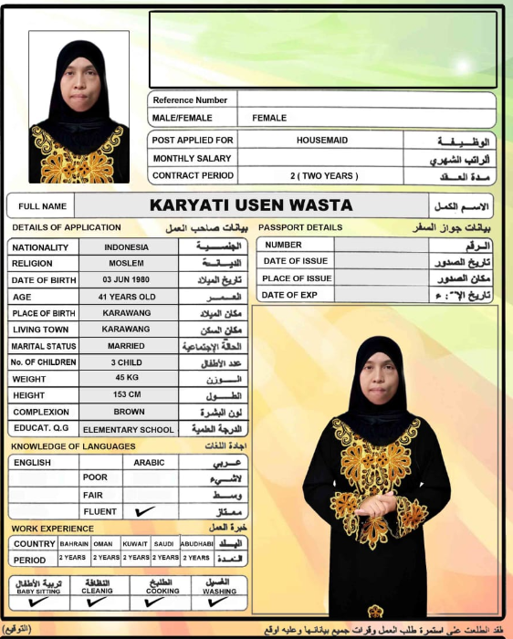 SHE KNOWS CLEANING WASHING IRONING TAKE CARE OF BABY SHE CAN COOK ARABIC FOOD ALSO