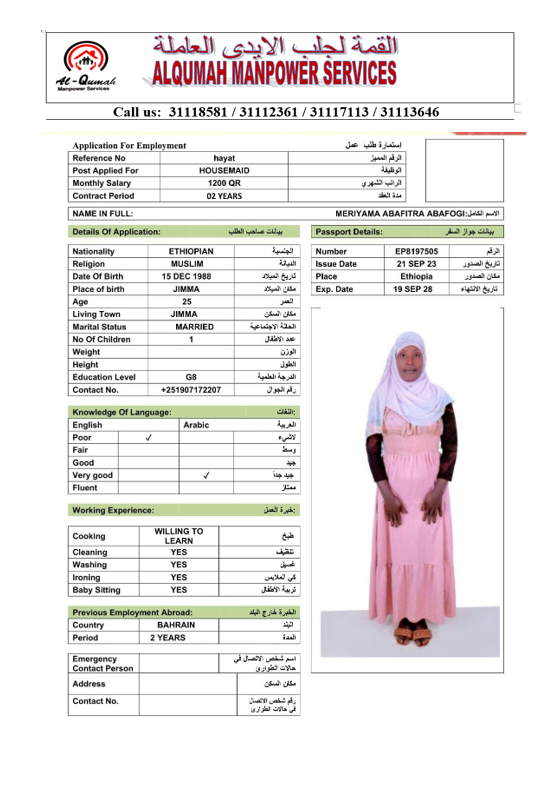 Name - English MERIYAMA ABAFITRA ABAFOGI