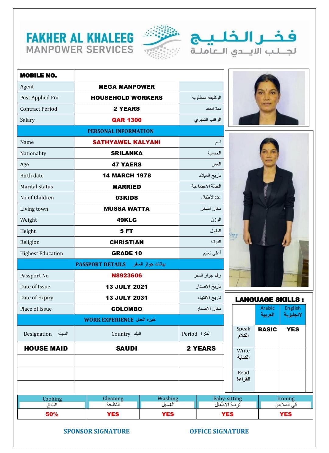 Welcome Are you looking for a driver, nurse, house manager, cleaner, nanny, secretary, professional workers for companies, security and guard personnel, foreman .... etc. Have you spent a long time looking for a maid? Have you made a great effort to find the right person? But to no avail ... Don't worry, we have the perfect solution to your problem Services…