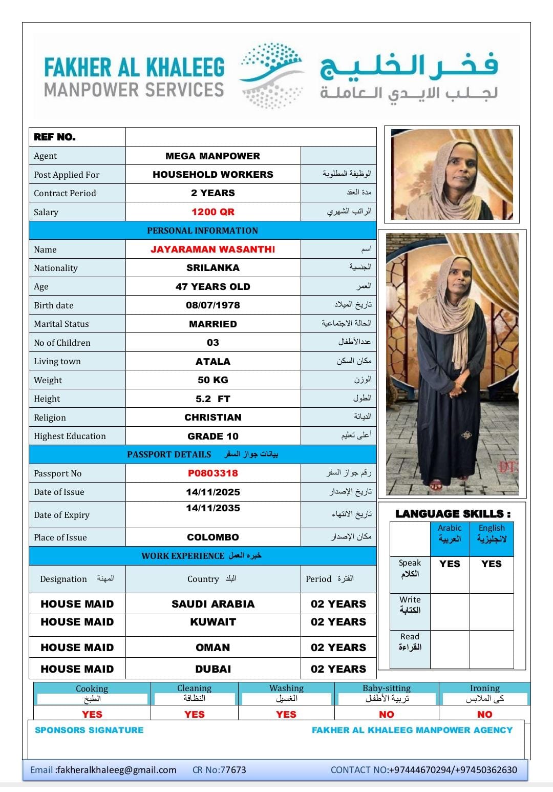 Welcome Are you looking for a driver, nurse, house manager, cleaner, nanny, secretary, professional workers for companies, security and guard personnel, foreman .... etc. Have you spent a long time looking for a maid? Have you made a great effort to find the right person? But to no avail ... Don't worry, we have the perfect solution to your problem Services…