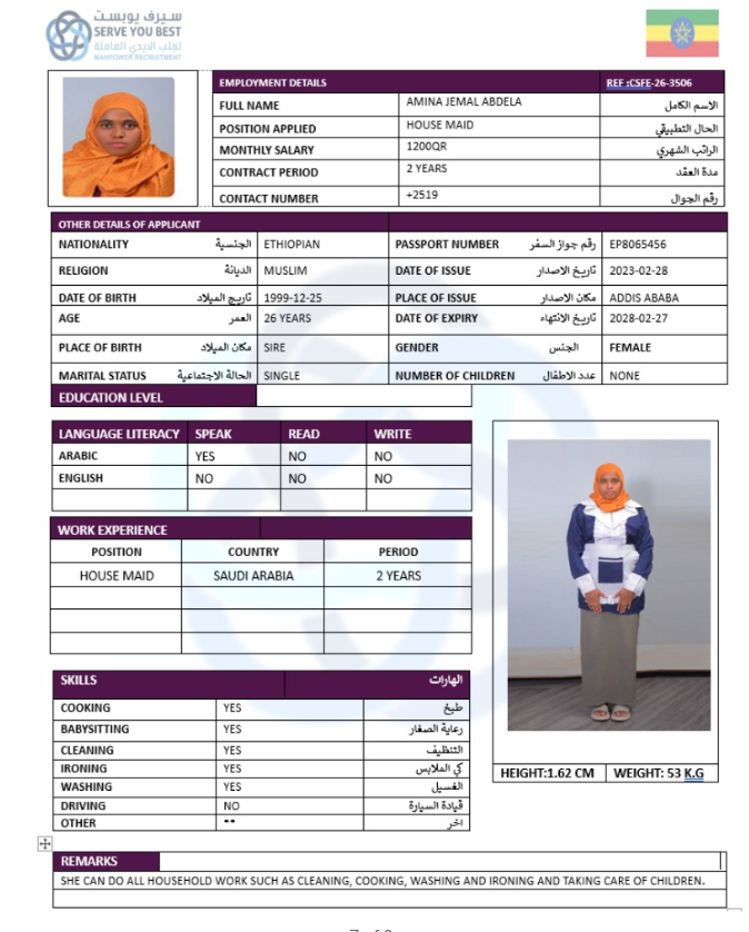 Name - English AMINA JEMAL ABDELA