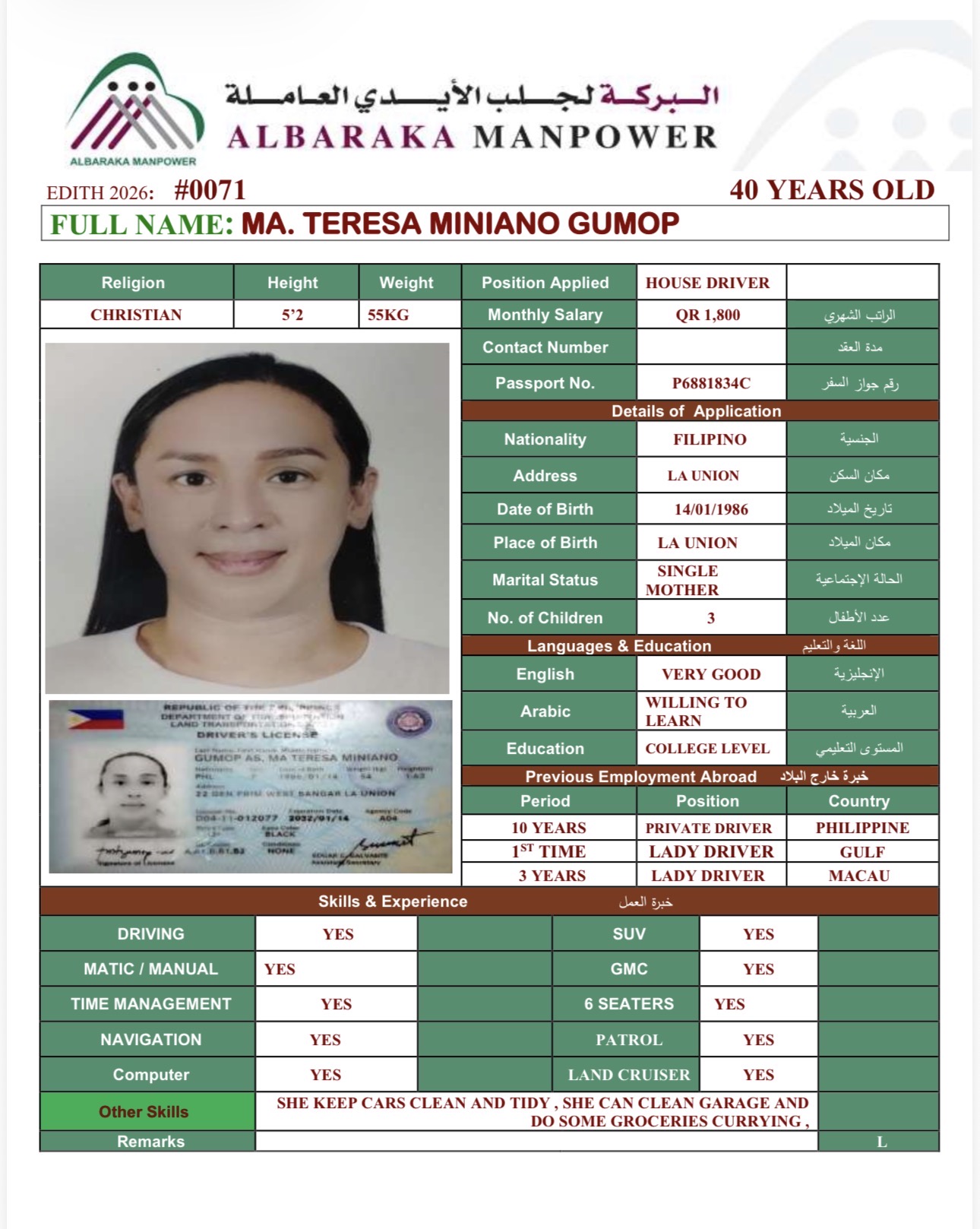 Welcome Are you looking for a driver, nurse, house manager, cleaner, nanny, secretary, professional workers for companies, security and guard personnel, foreman .... etc. Have you spent a long time looking for a maid? Have you made a great effort to find the right person? But to no avail ... Don't worry, we have the perfect solution to your problem Services…