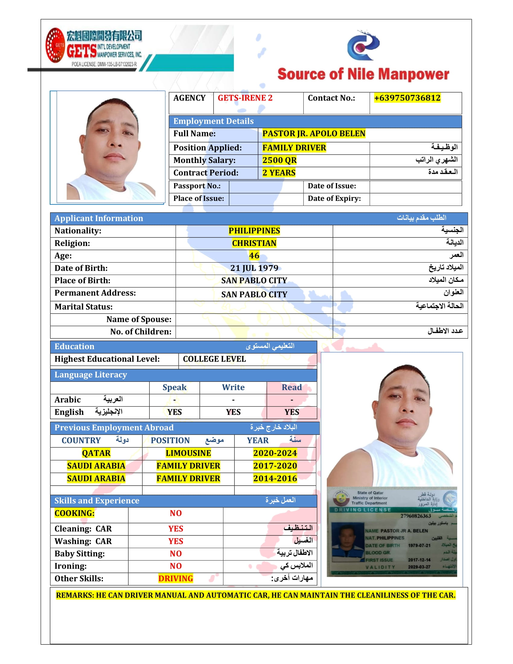 QATAR LICENSE FAMILY DRIVER