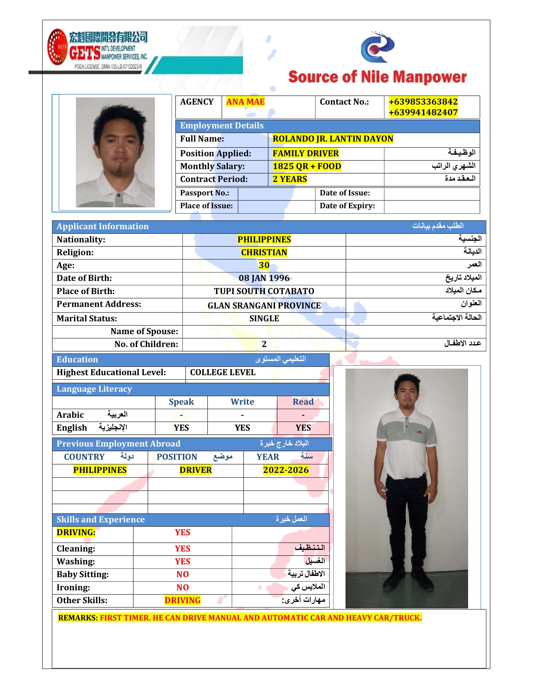 Name - English ROLANDO JR. LANTIN DAYON