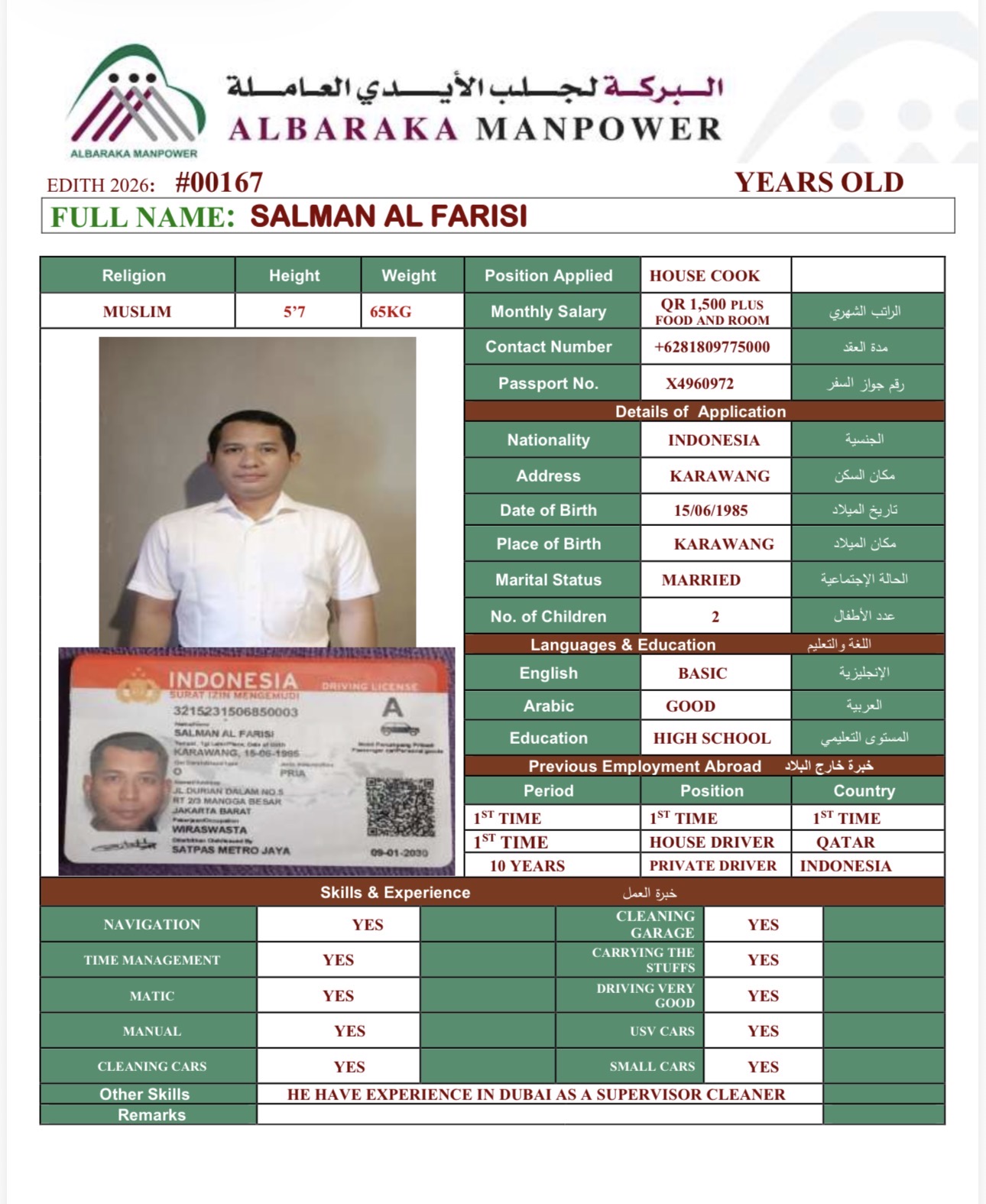 Welcome Are you looking for a driver, nurse, house manager, cleaner, nanny, secretary, professional workers for companies, security and guard personnel, foreman .... etc. Have you spent a long time looking for a maid? Have you made a great effort to find the right person? But to no avail ... Don't worry, we have the perfect solution to your problem Services…