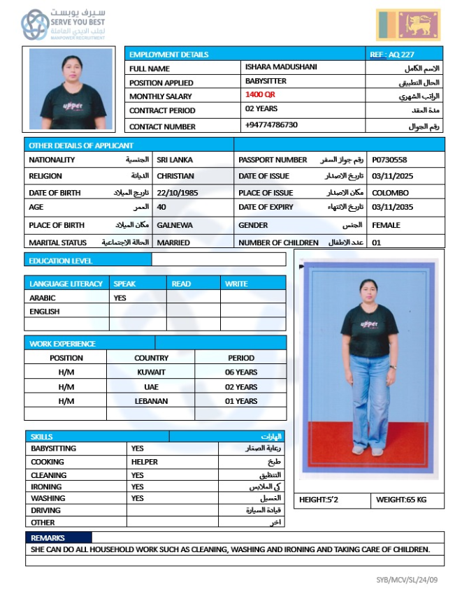 Welcome Are you looking for a driver, nurse, house manager, cleaner, nanny, secretary, professional workers for companies, security and guard personnel, foreman .... etc. Have you spent a long time looking for a maid? Have you made a great effort to find the right person? But to no avail ... Don't worry, we have the perfect solution to your problem Services…