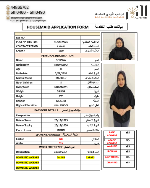 Welcome Are you looking for a driver, nurse, house manager, cleaner, nanny, secretary, professional workers for companies, security and guard personnel, foreman .... etc. Have you spent a long time looking for a maid? Have you made a great effort to find the right person? But to no avail ... Don't worry, we have the perfect solution to your problem Services…