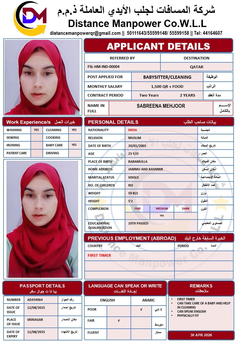 Welcome Are you looking for a driver, nurse, house manager, cleaner, nanny, secretary, professional workers for companies, security and guard personnel, foreman .... etc. Have you spent a long time looking for a maid? Have you made a great effort to find the right person? But to no avail ... Don't worry, we have the perfect solution to your problem Services…